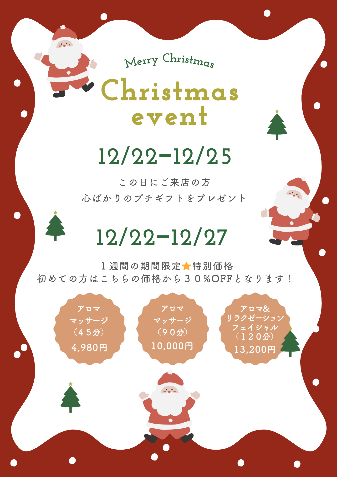 【12/22~12/27】アロママッサージメニュー 特別価格