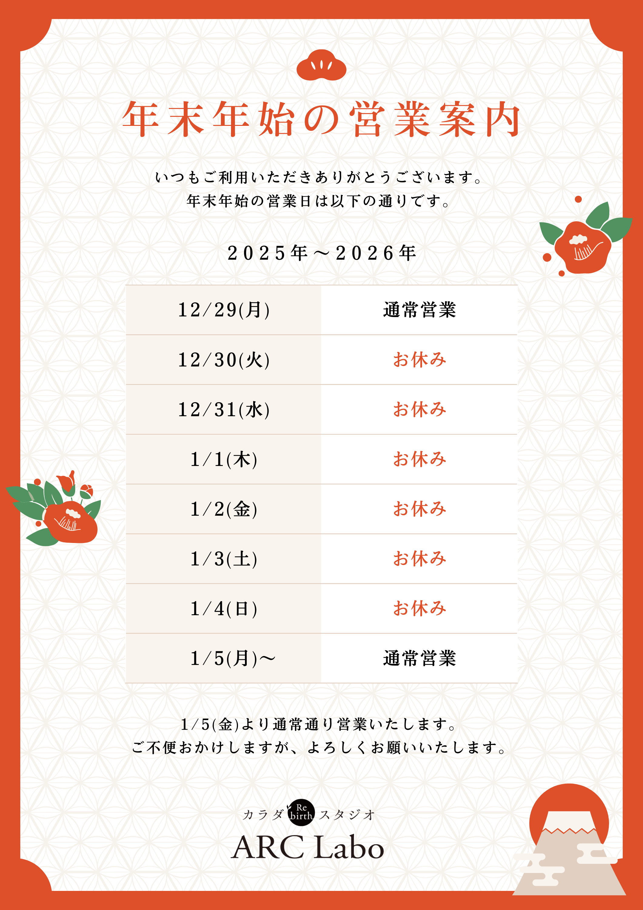 2025年12月30日(火)~2026年1月4日(日) 休業